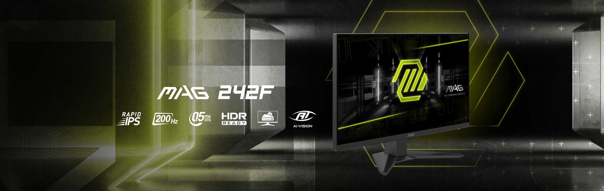 Zažijte pohlcující hraní s herním monitorem MAG 242F. Je vybaven panelem s rozlišením 1920 x 1080 (FHD), obnovovací frekvencí 200 Hz a rychlou odezvou 0,5 ms (GtG, min.). Monitor je připraven pro HDR, což vylepšuje poutavé detaily díky úpravám kontrastu a stínů. Herní monitor MSI MAG 242F, navržený pro soutěžní FPS, RPG/MMORPG z pohledu první osoby a letecké/závodní simulátory, posouvá příležitostné hraní na novou úroveň a vyzývá hráče, aby viděli za hranice hry.