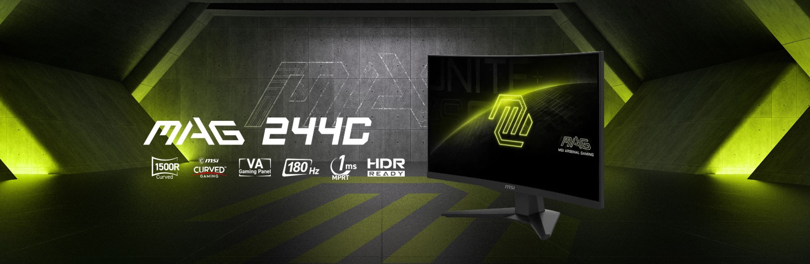 Zažijte pohlcující hraní s herním monitorem MAG 244C. Je vybaven panelem s rozlišením 1920 x 1080 (FHD), obnovovací frekvencí 180 Hz a rychlou odezvou 1 ms (MPRT). Monitor je připraven pro HDR, což vylepšuje poutavé detaily díky úpravám kontrastu a stínů. Herní monitor MSI MAG 244C Curved Gaming Monitor, navržený pro soutěžní FPS, RPG/MMORPG z pohledu první osoby a letecké/závodní simulátory, posouvá příležitostné hraní na novou úroveň a vyzývá hráče, aby viděli za hranice hry.