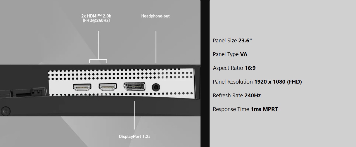 Vybaveno obnovovací frekvencí 240 Hz a dobou odezvy 0,5 ms (GtG, min.), což je výhodou v rychle se pohybujících žánrech her, jako jsou střílečky z pohledu první osoby, bojové hry, závodní simulátory, strategie v reálném čase a sportovní hry.