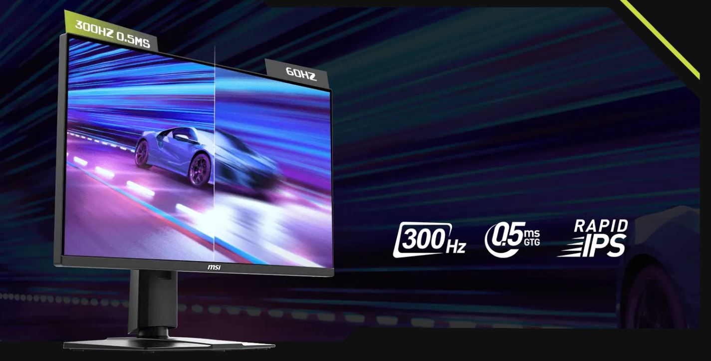 Vybaven obnovovací frekvencí 300 Hz a odezvou 0,5 ms (GtG min), tento displej exceluje v rychlých herních žánrech jako jsou střílečky z pohledu první osoby, bojovky, závodní simulace, strategie v reálném čase i sportovní tituly.