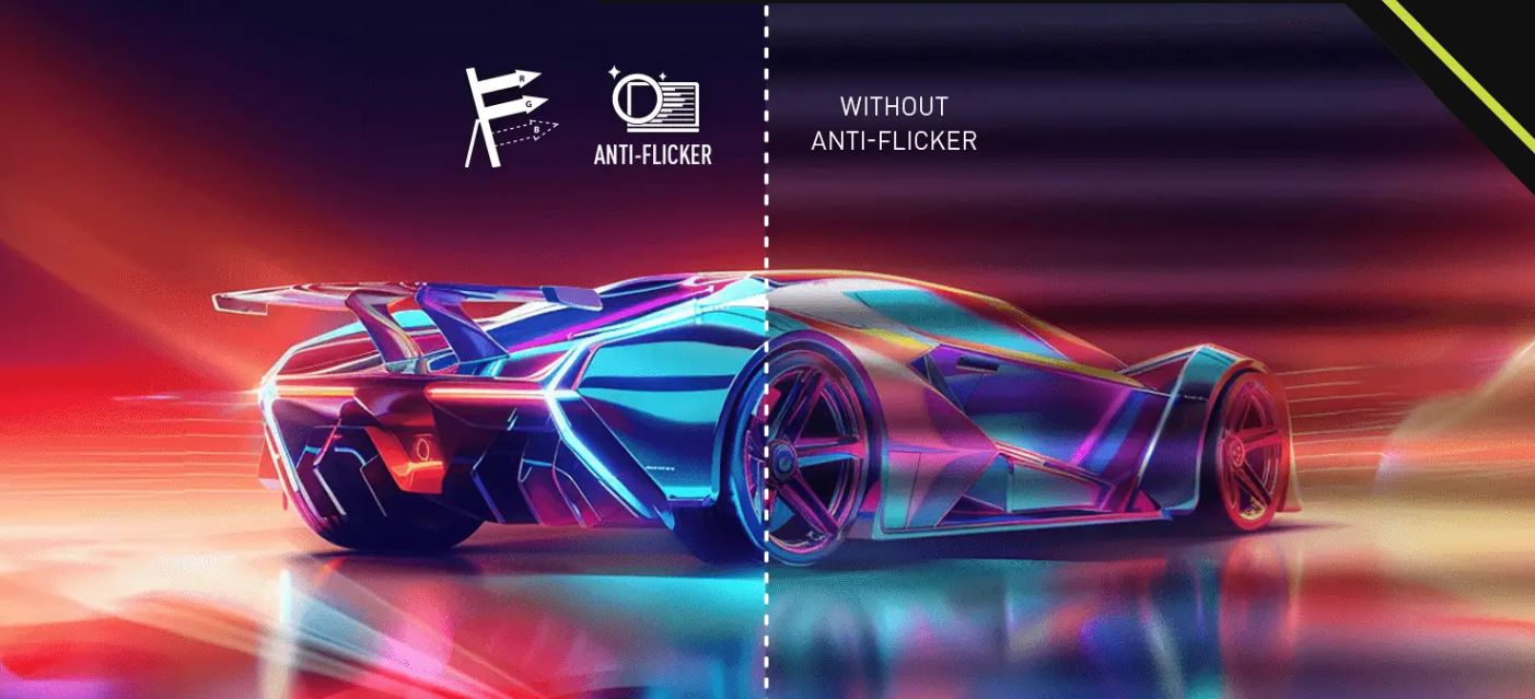 Technologie Anti-Flicker a redukce modrého světla zajišťují maximálně příjemný zážitek ze sledování. Méně blikání a nižší úroveň modrého světla znamenají, že můžeš hrát déle bez únavy očí.
