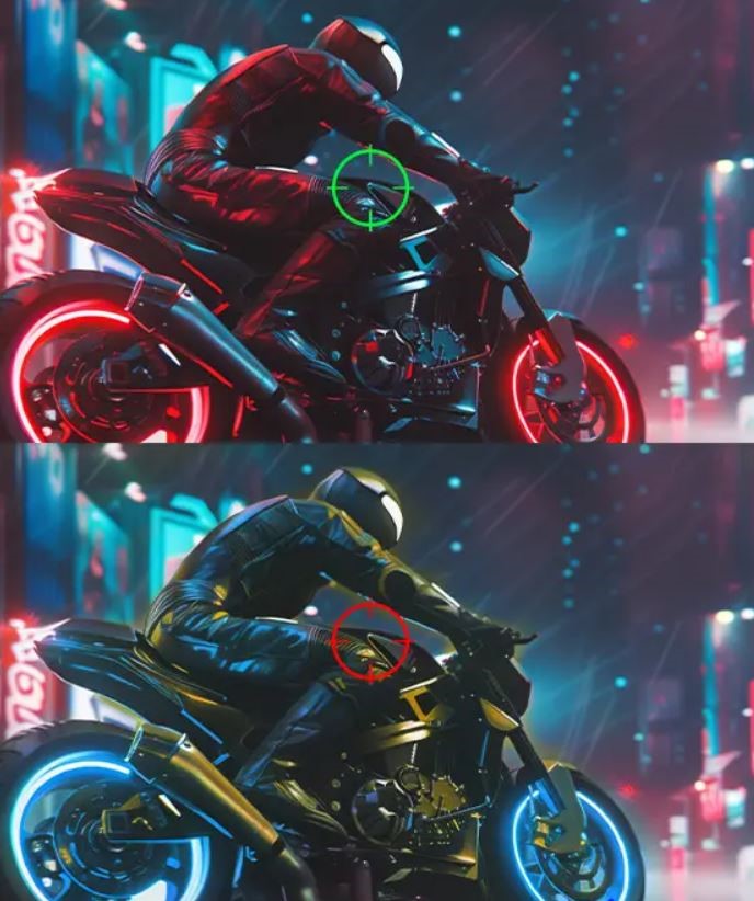 Cílový bod automaticky mění barvu, aby byl vždy dobře viditelný. Pokud se barva bodu překryje s barvou pozadí, může to ztížit zaměřování.