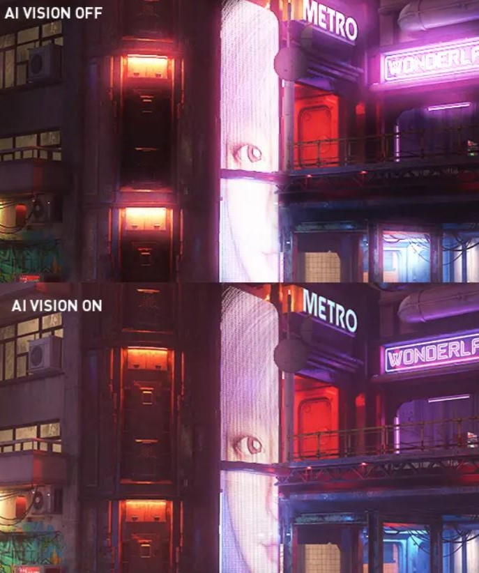 Nová technologie AI Vision dokáže odhalit detaily i v tmavých oblastech, zároveň zvyšuje celkový jas a sytost barev, takže obraz rozjasní tvůj den.
