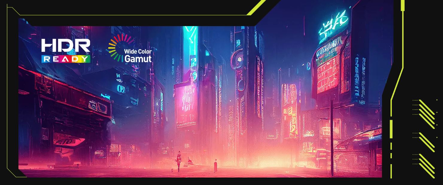 Monitor MSI vybavený technologií HDR Ready zobrazuje obraz s více detaily, širším barevným spektrem a vzhledem, který se více blíží tomu, jak jej vnímá lidské oko ve srovnání s tradičními monitory. Zaručuje špičkový herní a multimediální zážitek díky živému vykreslení každého detailu s výraznými barvami a výjimečnou ostrostí.