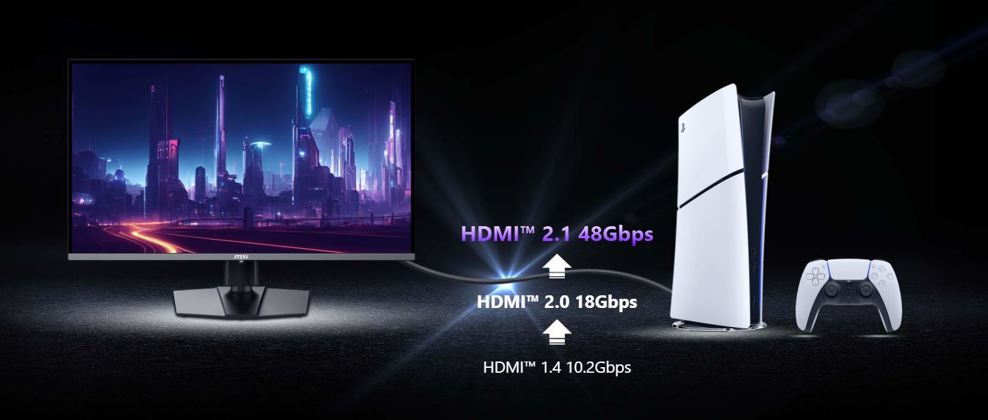 Po připojení vestavěné technologie HDMI™ CEC (Consumer Electronics Control) ke kontrolerům PlayStation nebo Switch lze pomocí těchto kontrolerů probudit obrazovku s různými režimy, které lze upravit podle jednotlivých zařízení. Monitor také podporuje funkci VRR (Variable Refresh Rate) prostřednictvím režimu MSI Console. Užij si hraní bez trhání obrazu a bez jakéhokoli zhoršení kvality.