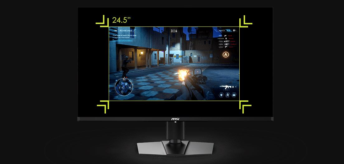 Podporuje různé poměry stran, což umožňuje výběr mezi 24,5" obrazy. Vyberte si velikost, která vám vyhovuje, a posuňte svůj herní zážitek na maximum.