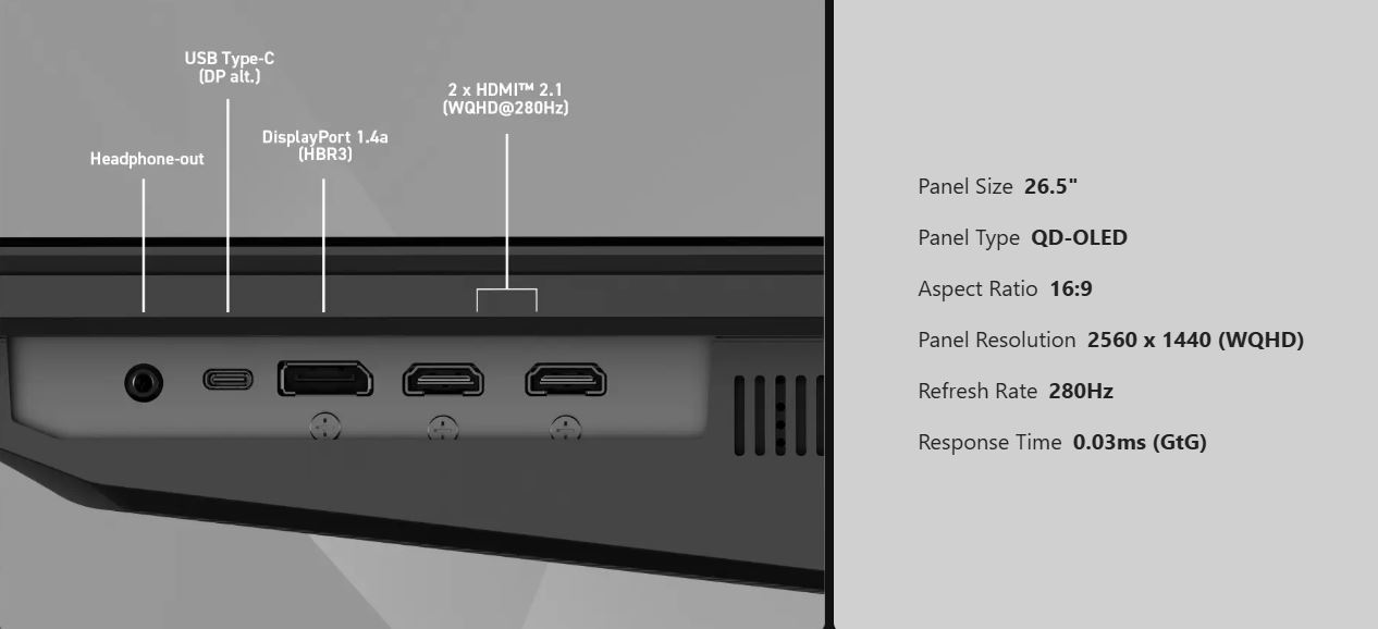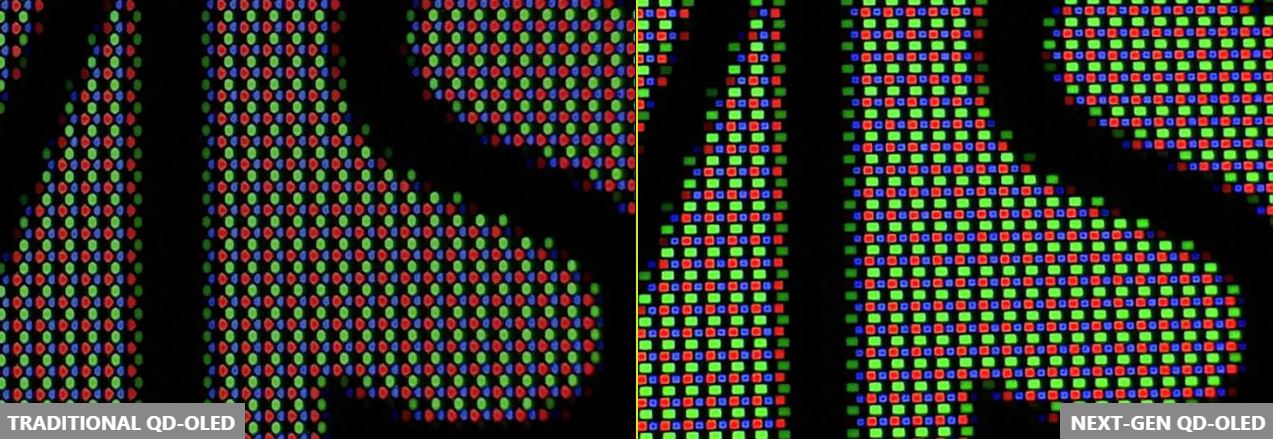 QD-OLED monitor využívá nejnovější generaci QD-OLED panelů. Rozložení subpixelů zlepšuje zážitek ze sledování, poskytuje ostřejší obraz, jemnější detaily a čistší text.
