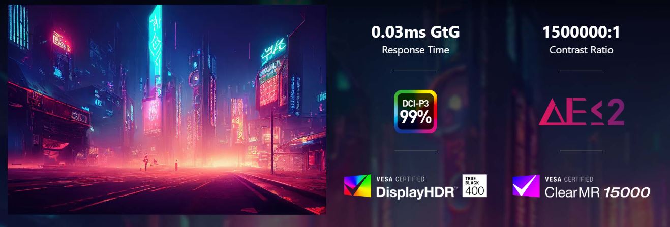 Monitor MSI, certifikovaný podle normy VESA DisplayHDR™ True Black 400, nabízí 99% pokrytí barevného prostoru DCI-P3 a přesnost Delta E ? 2, díky čemuž poskytuje živé barvy, detailní obraz a realistický vizuální zážitek pro vynikající hraní her a multimédia.