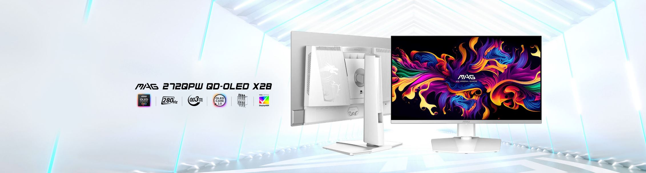 Vizualizujte své vítězství s herním monitorem MAG 272QPW QD-OLED X28. Pyšní se panelem QD-OLED s rozlišením 2560 x 1440 (WQHD), obnovovací frekvencí 280 Hz a rychlou odezvou 0,03 ms (GtG). Certifikace VESA pro ClearMR 15000 a DisplayHDR True Black 400 zajišťuje mimořádně živý obraz a omezuje rozmazání pohybu. OLED Care 2.0 snižuje riziko vypálení OLED. Pro hráče na konzolích nabízí MAG 272QPW QD-OLED X28 porty HDMI™ 2.1 s šířkou pásma 48 Gb/s, podporou 120 Hz, VRR a ALLM.