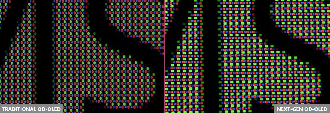 Nová řada herních monitorů QD-OLED je vybavena panely QD-OLED nejnovější generace. Uspořádání subpixelů zlepšuje zážitek ze sledování a poskytuje ostřejší obraz, jemnější detaily a jasnější text.