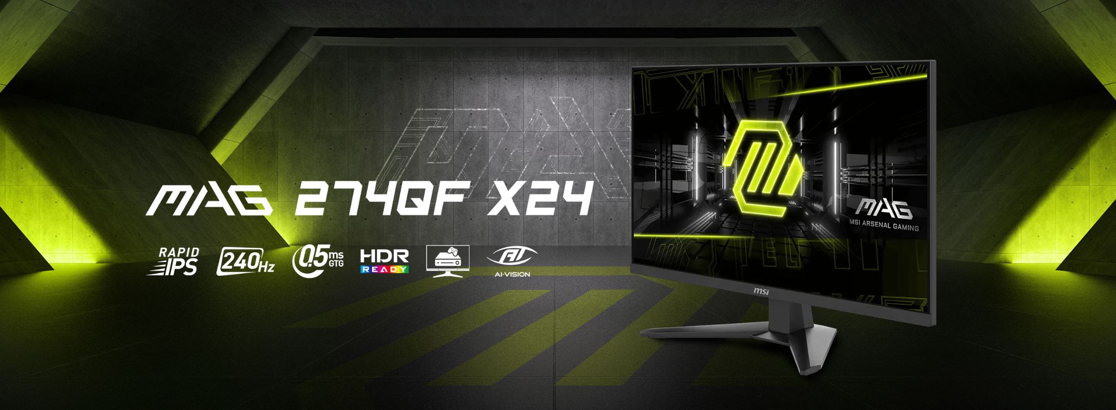 Zažijte pohlcující hraní s herním monitorem MAG 274QF X24. Je vybaven panelem s rozlišením 2560 x 1440 (WQHD), obnovovací frekvencí 240 Hz a rychlou odezvou 0,5 ms (GtG). Monitor je připraven pro HDR, což vylepšuje poutavé detaily díky úpravám kontrastu a stínů. Herní monitor MSI MAG 274QF X24, navržený pro soutěžní FPS, RPG/MMORPG z pohledu první osoby a letecké/závodní simulátory, posouvá příležitostné hraní na novou úroveň a vyzývá hráče, aby viděli za hranice hry.