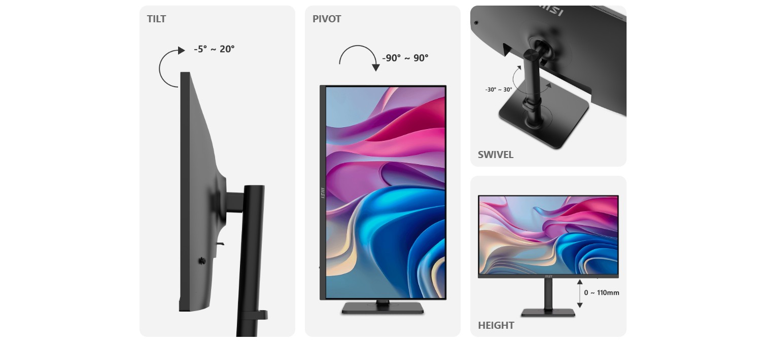 Díky nastavitelnému stojanu můžete vždy přizpůsobit způsob, jakým vidíte a pracujete. Najděte si nejvhodnější polohu pro sebe.