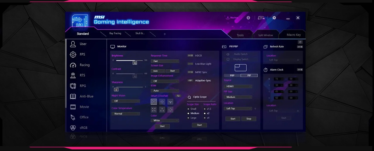 S aplikací Gaming Intelligence je nastavení herního monitoru velmi snadné. Nemusíte používat tlačítka na monitoru a procházet všechna menu, stačí použít klávesnici a myš k konfiguraci monitoru. Aplikace vám dokonce nabízí možnosti klávesových zkratek, takže můžete snadno přepínat nastavení mezi různými hrami.