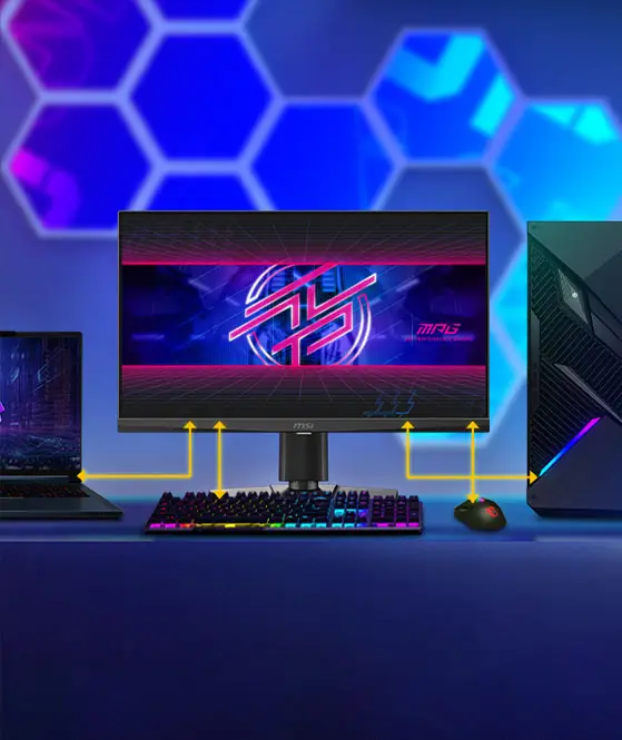 Ovládejte více zařízení pomocí jedné sady klávesnice, myši a herního monitoru MSI.
