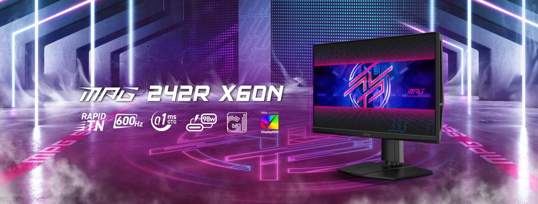 MPG 242R X60N je vybaven špičkovým panelem Rapid TN a bleskovou obnovovací frekvencí 600 Hz, která minimalizuje rozmazání pohybu a zdvojení obrazu a zajišťuje tak ostrost obrazu. S 24palcovou obrazovkou, kterou preferují hráči e-sportů, nabízí ideální velikost pro turnajové hraní. Udržte si náskok a zvyšte svůj výkon.