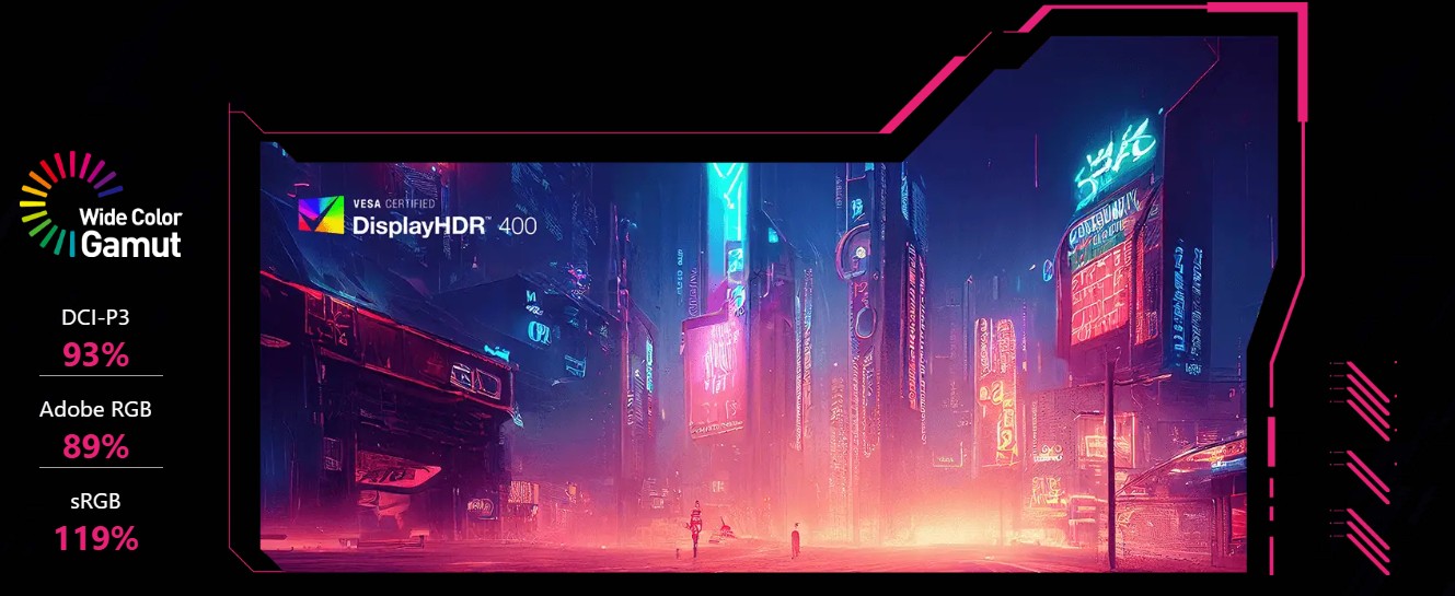 Monitor MSI je certifikován podle standardu VESA DisplayHDR™ 400, což zaručuje, že produkuje detailnější obraz, širší škálu barev a vzhled, který se více podobá tomu, co vnímá lidské oko, než tradiční monitory. Zaručuje vynikající herní a multimediální zážitek díky živému vykreslení každého detailu s jasnými barvami a výjimečnou čistotou.