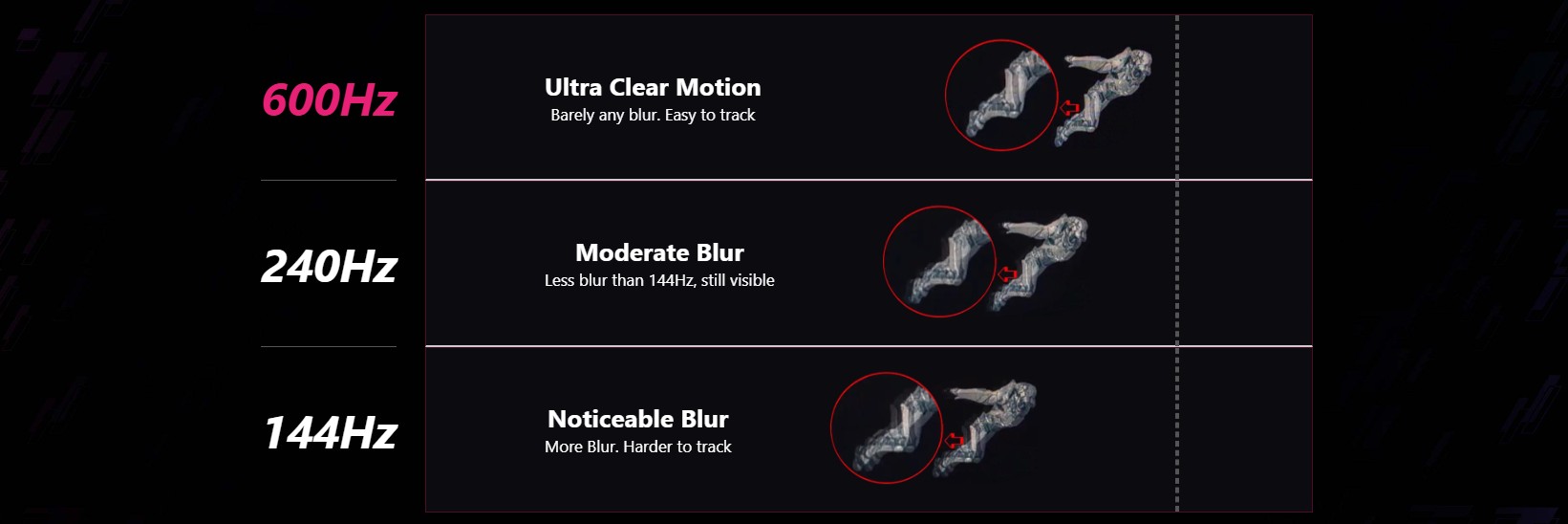 Ultrarychlá obnovovací frekvence 600 Hz minimalizuje rozmazání pohybu a zvyšuje ostrost při rychlé akci, čímž poskytuje ultra přesný obraz, který vám pomůže sledovat, mířit a reagovat s jistotou.