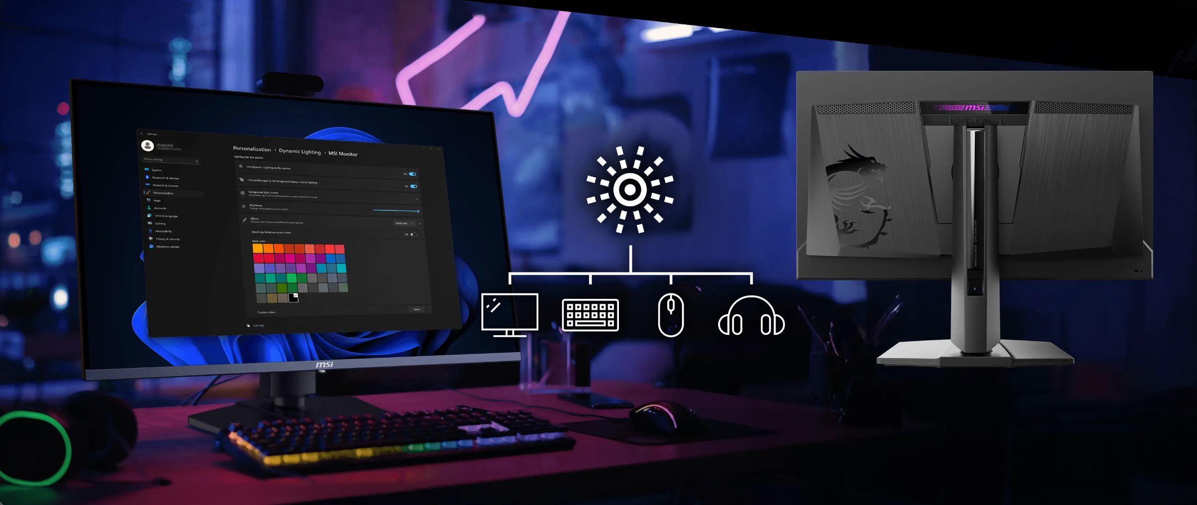 Monitor získal certifikaci Windows Dynamic Lighting, která uživatelům umožňuje ovládat a synchronizovat světelné efekty napříč připojenými zařízeními.