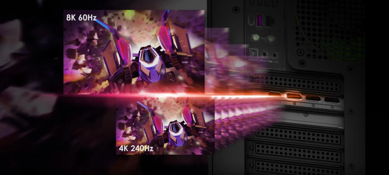 MPG Infinite Z3 podporuje DP 2.1 a nabízí ultra vysoké rozlišení a pokročilou grafiku, což vám umožní vychutnat si dechberoucí 8K při 60 Hz nebo plynulé 4K při 240 Hz s živými barvami a ostrými detaily.