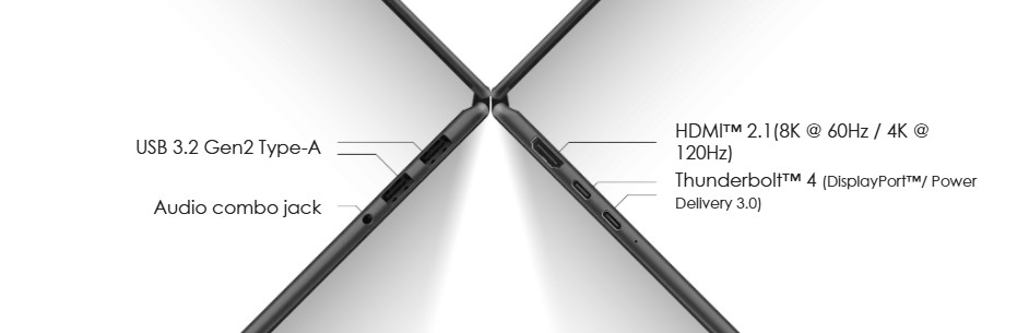 Řada Prestige je vybavena porty Thunderbolt™ 4, USB typu A a HDMI, které vám poskytují flexibilitu pro připojení vysokorychlostních zařízení a snadné napájení více externích displejů. Všechny tyto konektory jsou součástí ultratenkého a ultralehkého designu, který neomezuje základní vstupní a výstupní porty.