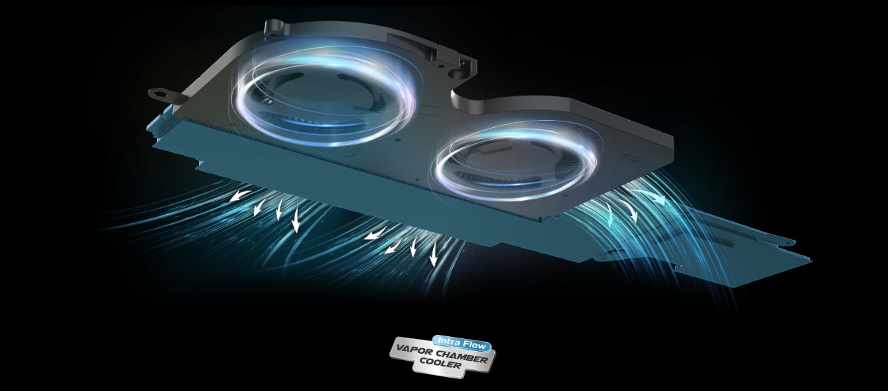 Chladič Vapor Chamber Cooler má větší povrch pro odvod tepla, což umožňuje rychlejší, rovnoměrnější a efektivnější rozptyl tepla ve všech směrech, a to i v ultra tenké skříni. Díky vylepšenému designu vnitřního proudění zůstávají teploty stabilní, což zabraňuje omezení výkonu a zajišťuje konzistentní výkon.