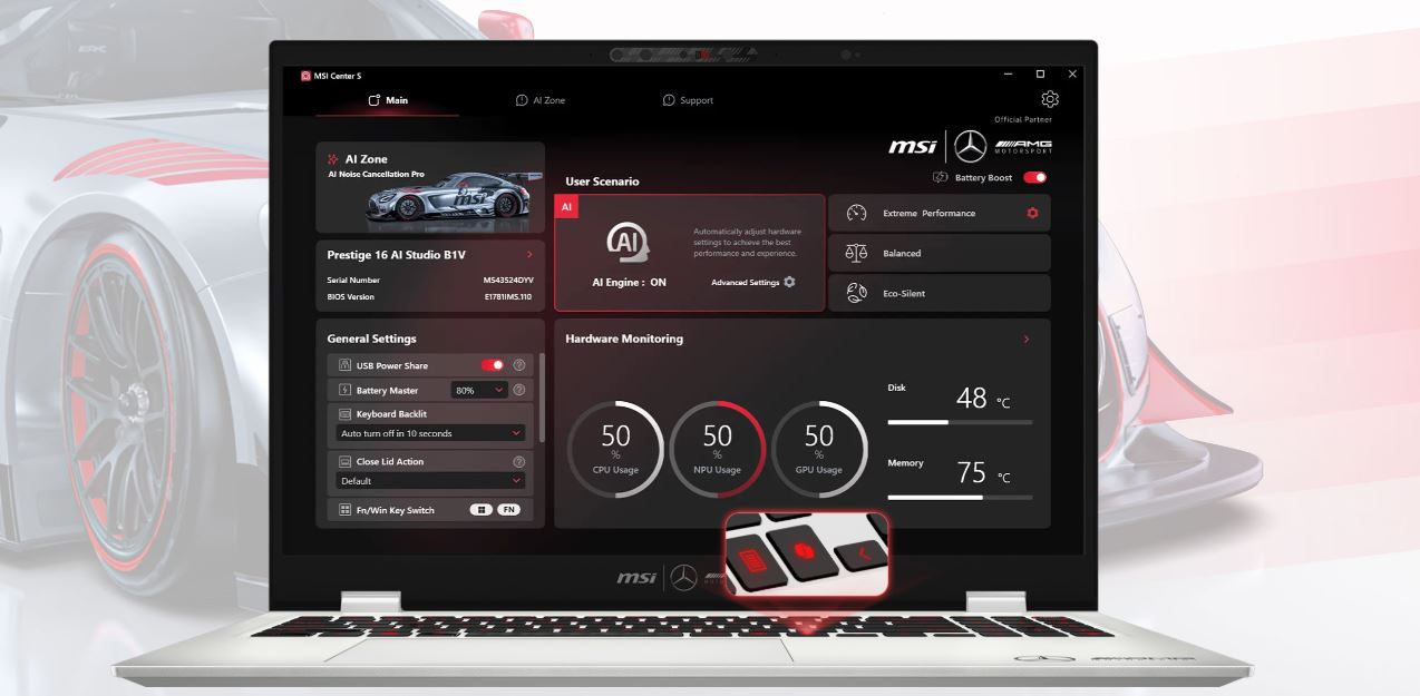 Zažijte produktivitu na nové úrovni s Copilot+ PC a MSI AI Engine – navrženými pro plynulý multitasking a inteligentní optimalizaci výkonu. Tyto pokročilé nástroje AI se přizpůsobují vašim potřebám a bez námahy zefektivňují pracovní postupy. Jděte ještě dál s limitovanou edicí rozhraní MSI Center, kde AI Engine staví inteligenci do popředí a poskytuje skutečně prémiový, personalizovaný zážitek.