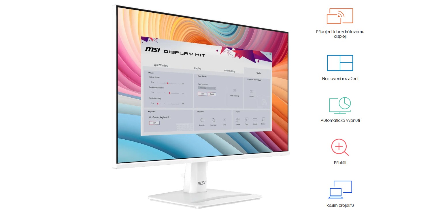Exkluzivní software Display Kit od společnosti MSI poskytuje nejpohodlnější nástroj, správné zobrazení, které vám umožní číst a zároveň si užívat obraz, a barevný režim pro práci i každodenní použití.