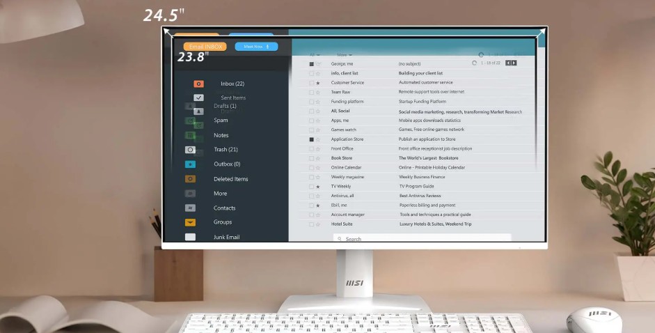 24,5palcová obrazovka je ideální velikostí pro většinu kancelářských a domácích stolů, protože optimálně odpovídá lidskému zornému poli a poskytuje pohlcující a ergonomický zážitek.