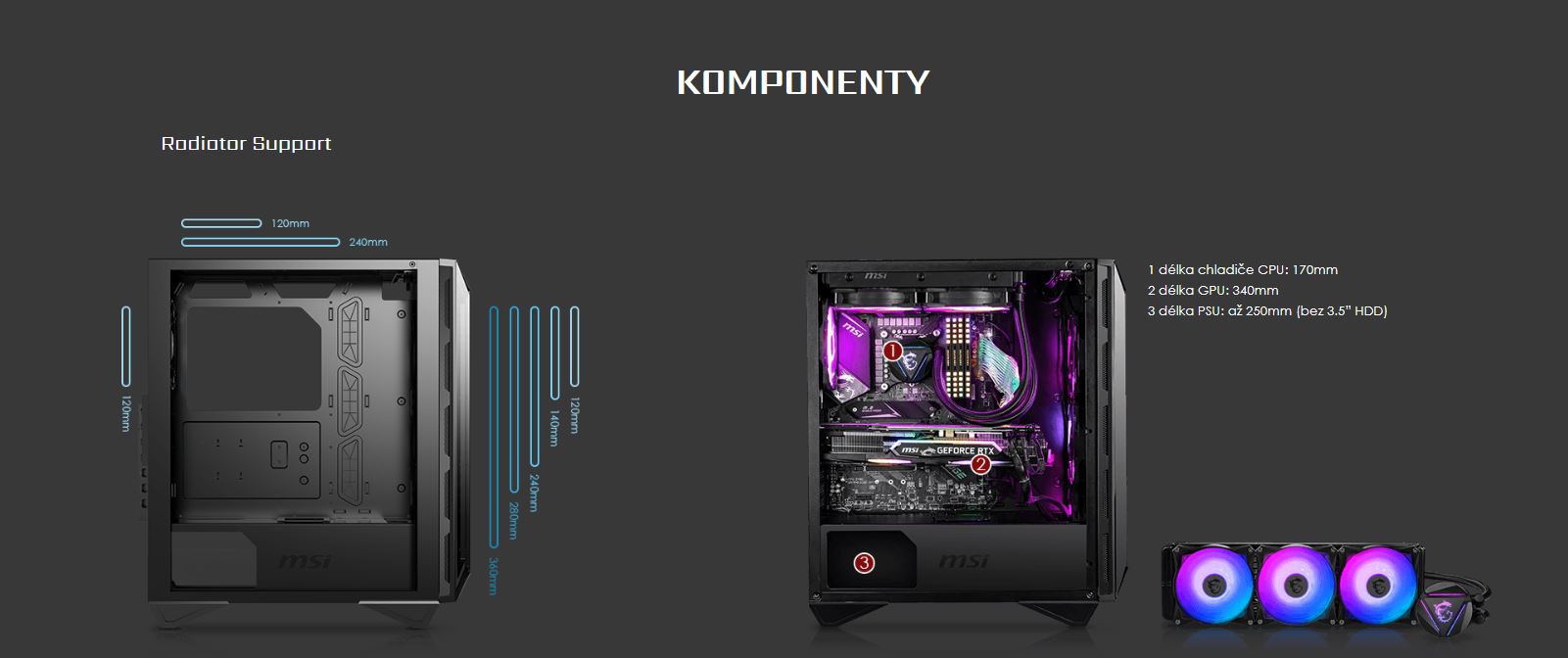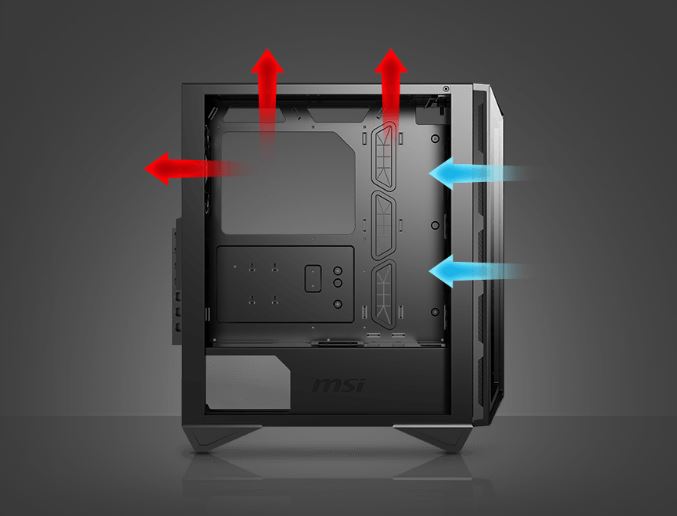 Řada MPG GUNGNIR 110 je dobře vybavena pro zajištění nejefektivnějšího proudění vzduchu pro chlazení systému. Řada MPG GUNGNIR 110 je dodávána se 4 ventilátory a je schopna jich pojmout až 6.