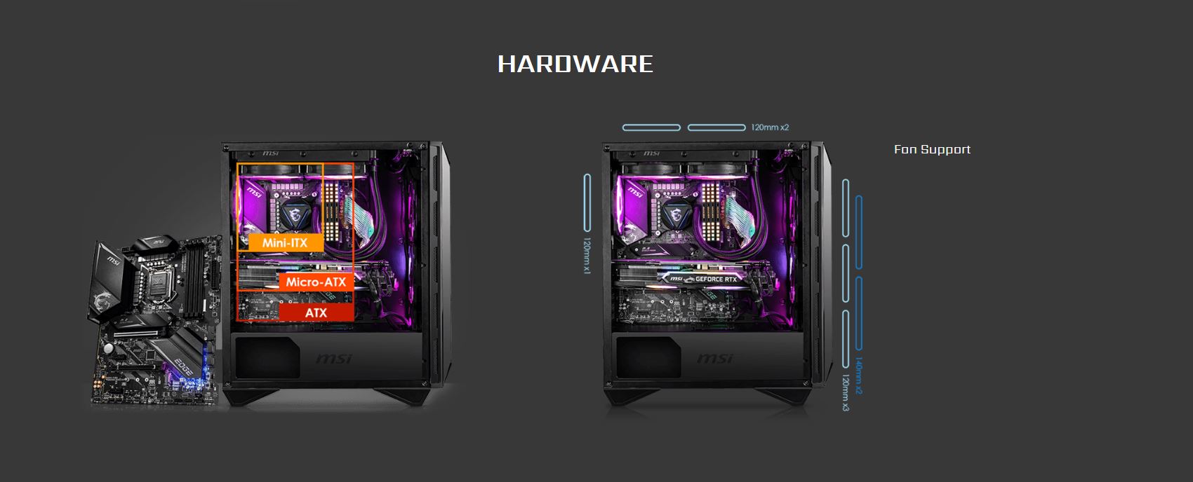 Řada MPG GUNGNIR 110 odhaluje váš arzenál pomocí tvrzeného bočního skla. Zapněte systém s vodním chladičem, základní deskou a grafickou kartou MSI pro maximální výkon.