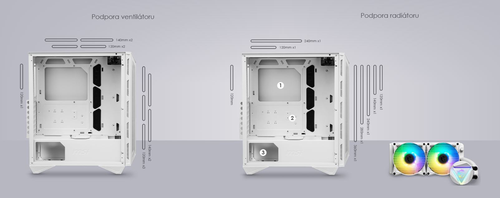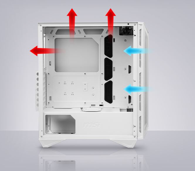 Řada MPG GUNGNIR 110 je dobře vybavena pro zajištění nejefektivnějšího proudění vzduchu pro chlazení systému. Řada MPG GUNGNIR 110 je dodávána se 4 ventilátory a je schopna jich pojmout až 6.