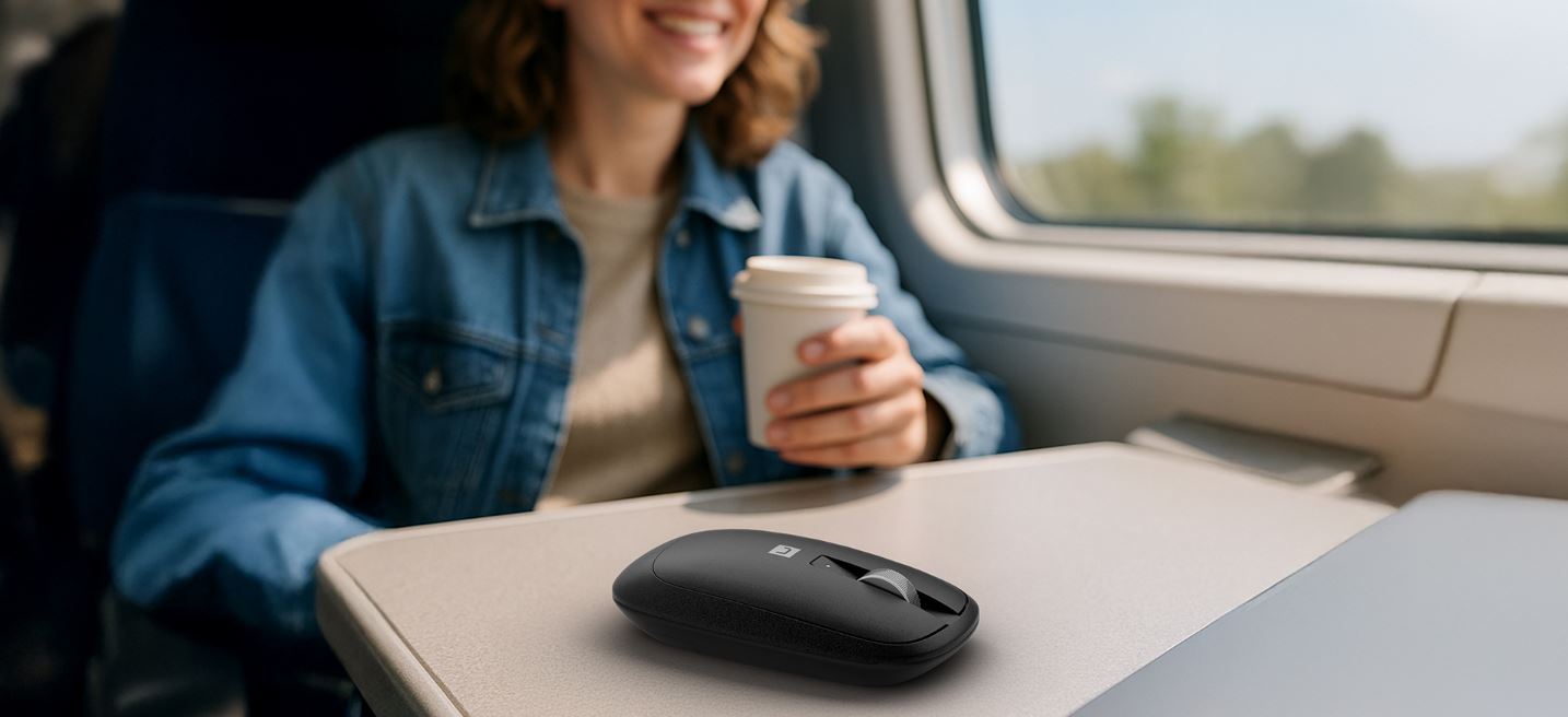 Díky tenkému a lehkému provedení je myš ideální na cesty. Jedná se o kompaktní mobilní nástroj určený pro uživatele "na cestách", kteří potřebují plnou funkčnost, aniž by museli slevit ze svého pohodlí.