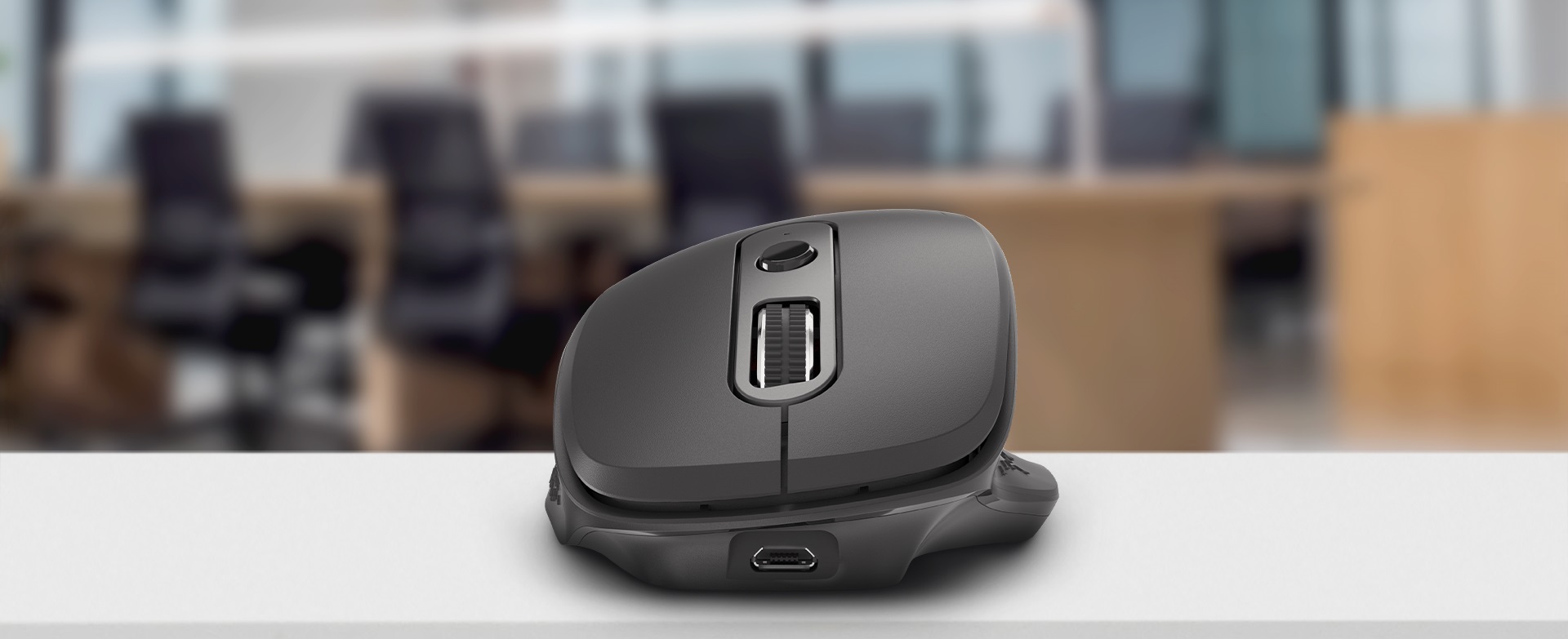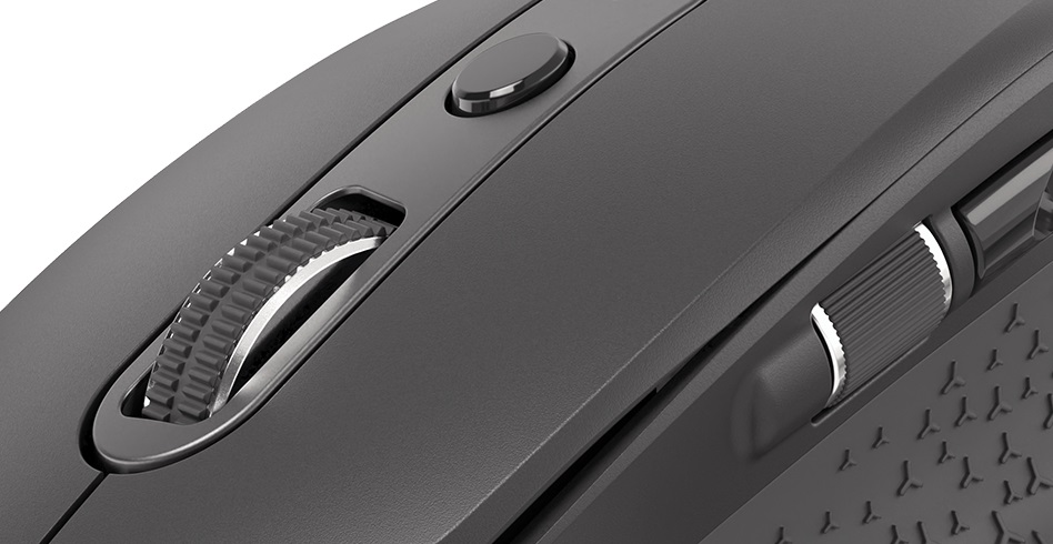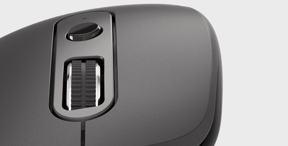 Myš v tmavé, klasické barvě vypadá skvěle na obchodních schůzkách, protože se nenápadně pyšní stříbrnou povrchovou úpravou obou rolovacích koleček. Celek působí nejen elegantně a esteticky, ale také moderně s poutavou image prémiové myši.