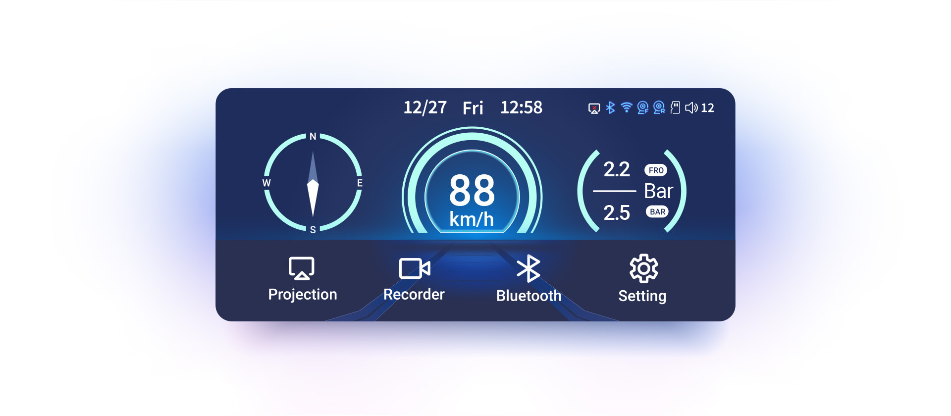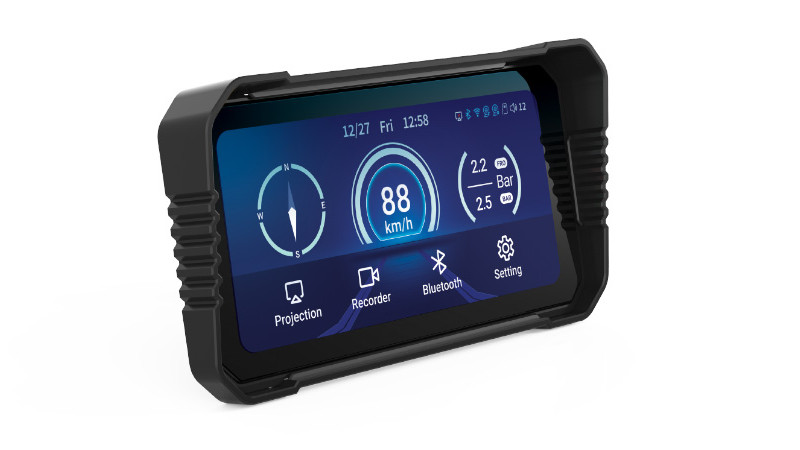 Toto zařízení typu "vše v jednom" kombinuje palubní kameru se dvěma kamerami, digitální rychloměr a kompas. Pomáhá také sledovat tlak a teplotu v pneumatikách a podporuje připojení chytrého telefonu přes Bluetooth/WIFI s CarPlay, Android Auto, AirPlay nebo Mirror Cast. Je navržen pro skutečné podmínky na silnici, je odolný vůči dešti, prachu a stříkající vodě – a funguje bezchybně za každého počasí!