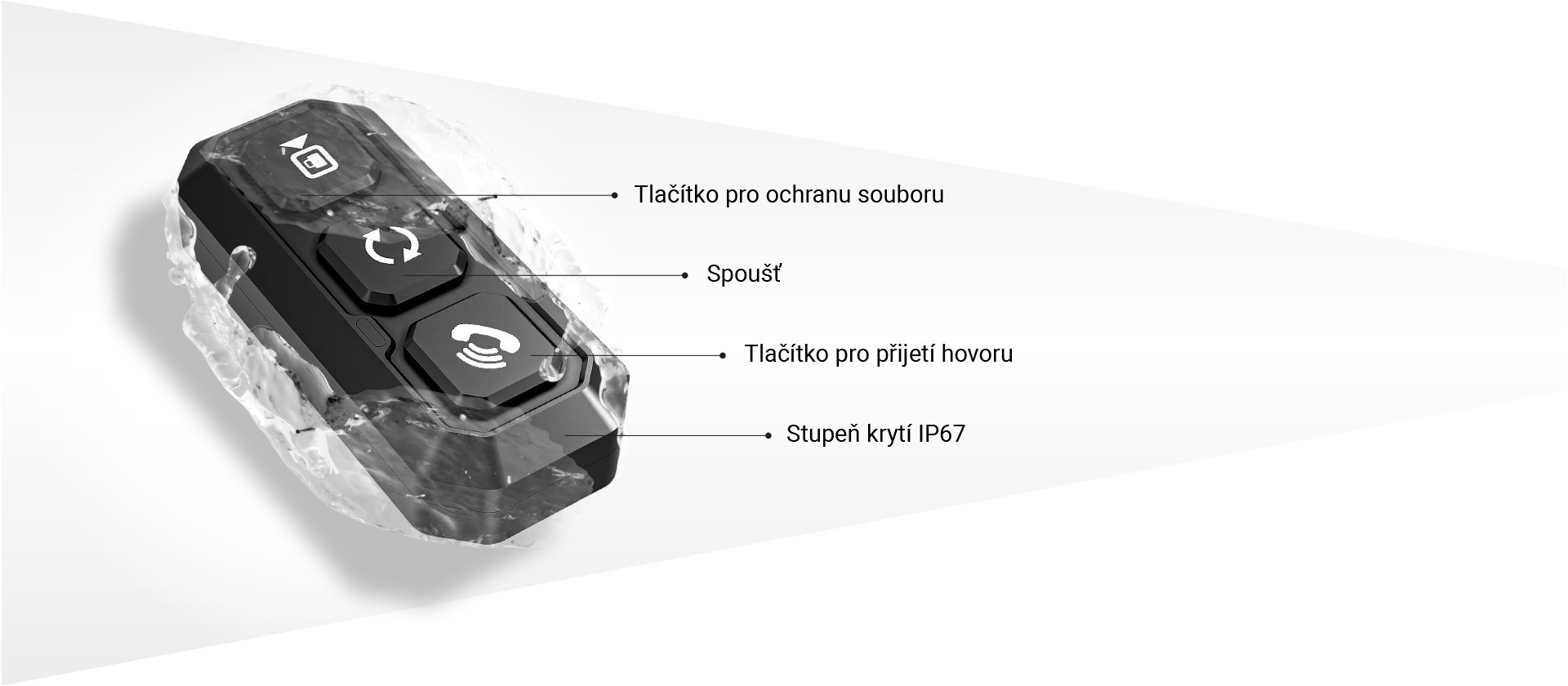 S NAVITEL MS850 DUAL SMART MOTO máte klíčové funkce přímo na dosah ruky: pořizujte fotografie, přijímejte hovory a zamykáte důležité soubory - to vše z vodotěsného dálkového ovladače na řídítkách.