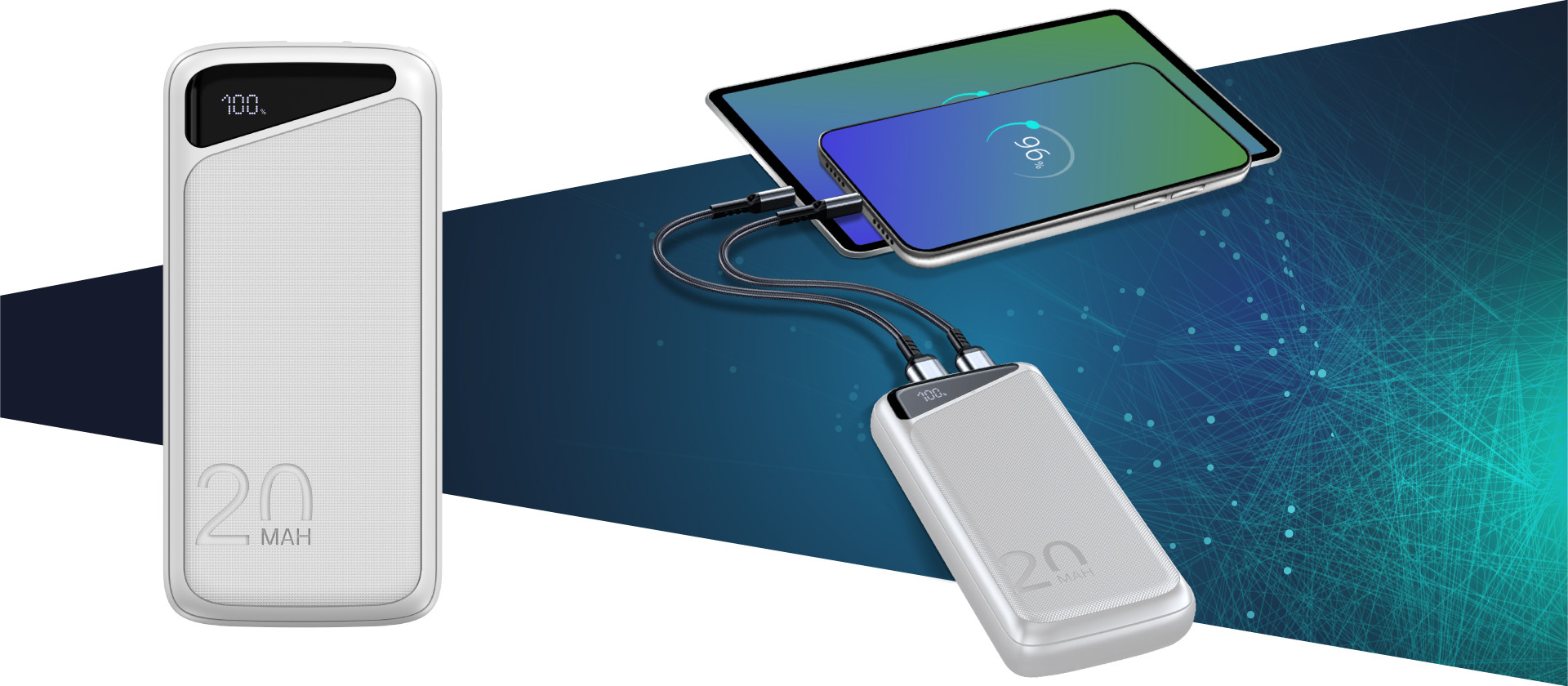 NAVITEL PWR20 MX WHITE je přenosná externí baterie s kapacitou 20000 mAh. Dva porty USB-A a reverzibilní port USB-C umožňují nabíjet více zařízení současně. Kapacita 20 000 mAh postačí na několik cyklů dobití tabletu, smartphonu nebo chytrých hodinek . Pro vizuální kontrolu zbývající úrovně nabití je na pouzdře umístěn digitální displej.