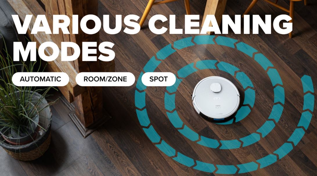 Niceboy ION Charles i9 Plus přichází s řadou čistících režimů, které přinášejí úplné přizpůsobení úklidu vašim potřebám. Automatický režim se postará o celkové vyčištění místnosti, zatímco režim s pevným bodem cíleně upraví určité oblasti. Díky speciálnímu režimu pro čištění konkrétních místností můžete přesně nastavit, které lokality mají být vyčištěny přednostně, a to přímo prostřednictvím aplikace. Tímto způsobem můžete úklid efektivně zaměřit pouze tam, kde je to potřeba, což vám ušetří čas i úsilí.