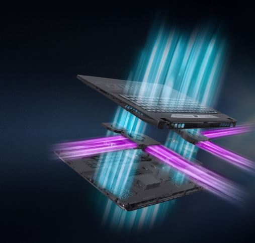 Velká zakrytá parní komora účinně odvádí tepelnou energii z CPU a GPU do výstupních otvorů, čímž zajišťuje vysokou stabilitu, výkon a spolehlivou odolnost. 3D VortX Air-Channeling