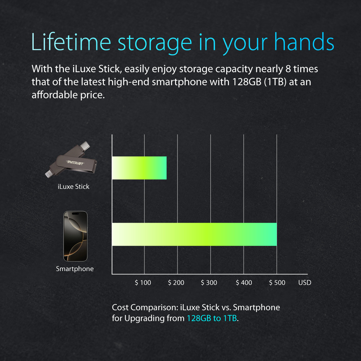 Patriot iLuxe Stick C MFi/256GB/USB 3.2/Lightning + USB-C/Černá