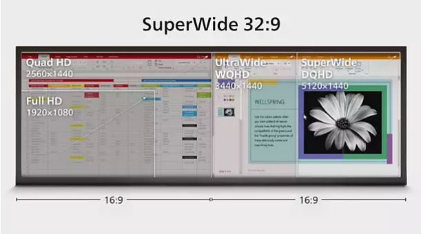 Obrazovka 32:9 SuperWide určená k nahrazení nastavení na více obrazovkách