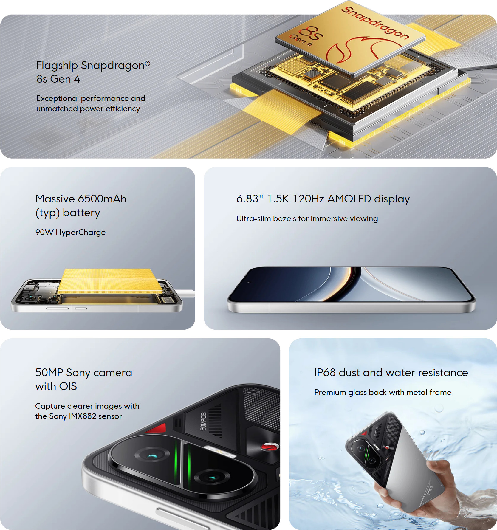 Špičková řada Snapdragon® 8s Gen4 se nyní pyšní architekturou All-Big-Core postavenou na pokročilém 4nm procesu TSMC. S maximální taktovací frekvencí 3,21 GHz poskytuje čipset výjimečný výkon a bez problémů zvládá náročné úkoly, což zajišťuje plynulý uživatelský zážitek.