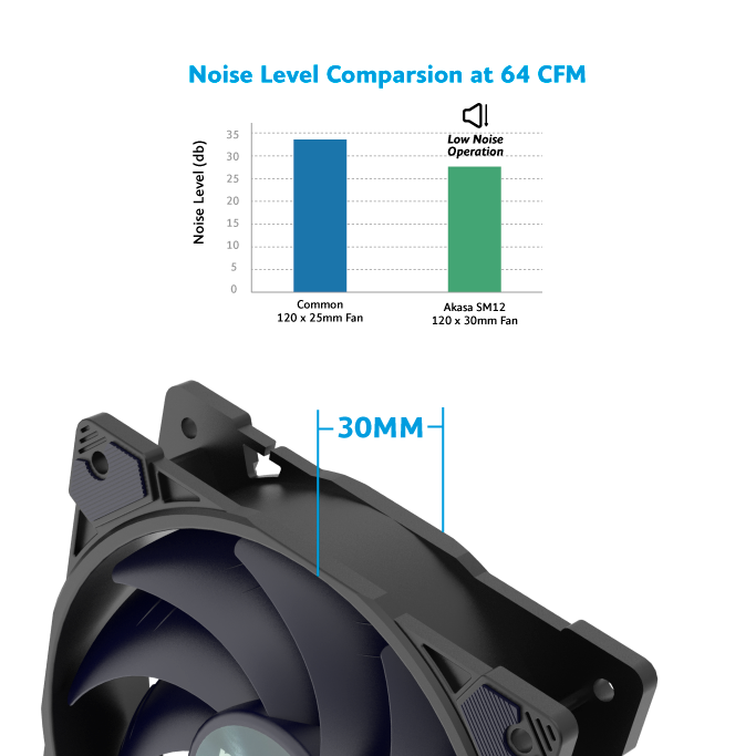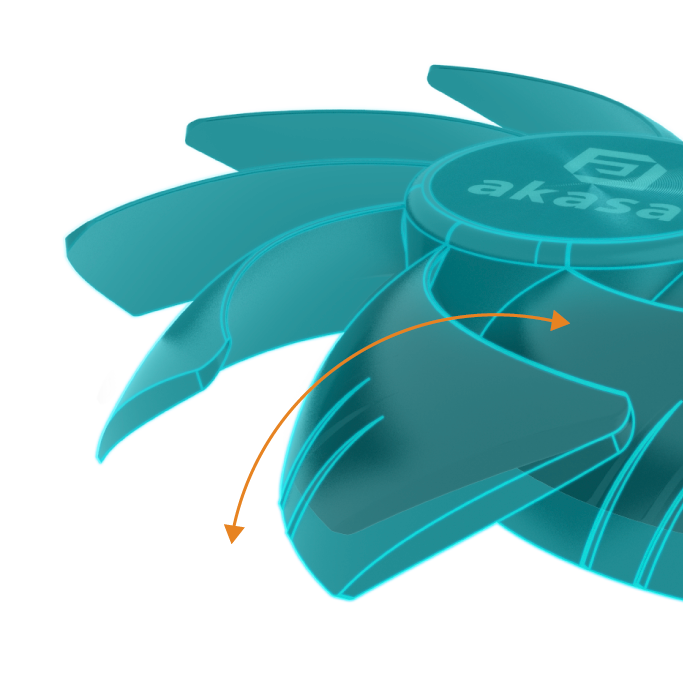 Pokročilá srpovitá konstrukce lopatek s vylepšeným zakřivením a tloušťkou lopatek zajišťuje vynikající 15% zvýšení průtoku vzduchu, který dosahuje až 64,8 CFM.