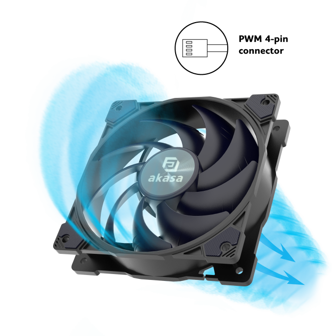 Inteligentní regulace otáček s pulzně šířkovou modulací (PWM) zajišťuje, že ventilátor účinně chladí váš systém, zůstává tichý při nižším zatížení a v ostatních případech funguje efektivně.