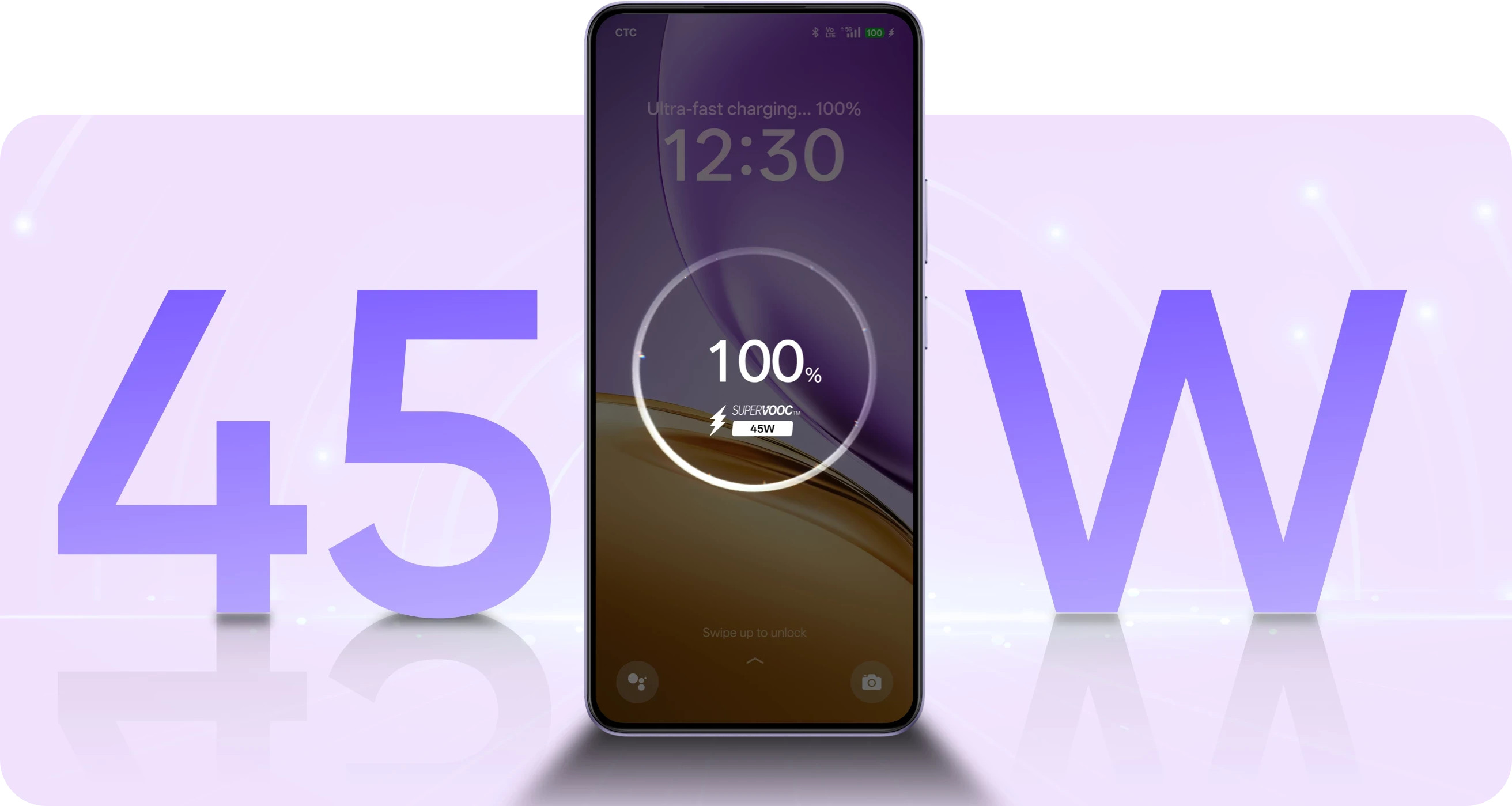 45W rychlé nabíjení vám umožňuje během okamžiku dobít zařízení a zachovat nepřerušené připojení.