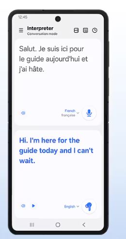 Překonejte jazykové bariéry ve svých konverzacích pomocí tlumočníka Galaxy AI. Poslouchejte překlady v reálném čase a soustřeďte se na konverzaci, aniž byste museli sledovat displej telefonu. Nyní si můžete vychutnat hands-free tlumočení, ať jste kdekoli.