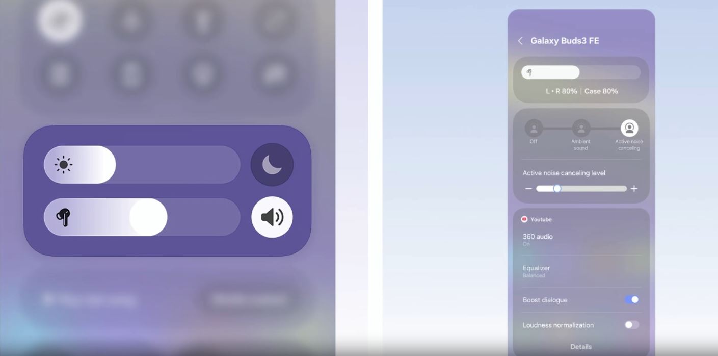Vylepšete zvuk při streamování videí nebo používání jiných aplikací. Přistupujte k hlavním funkcím a nastavení Galaxy Buds přímo z rychlého panelu, díky čemuž můžete snadno upravit ovládání šumu a zvukové preference podle svých představ – a to vše bez opuštění aplikace. Od přizpůsobení nastavení ekvalizéru ve Spotify až po zapnutí 360 Audio pro YouTube můžete nastavit a uložit zvuková nastavení pro každou aplikaci – vše tak bude ladit s vašimi preferencemi.