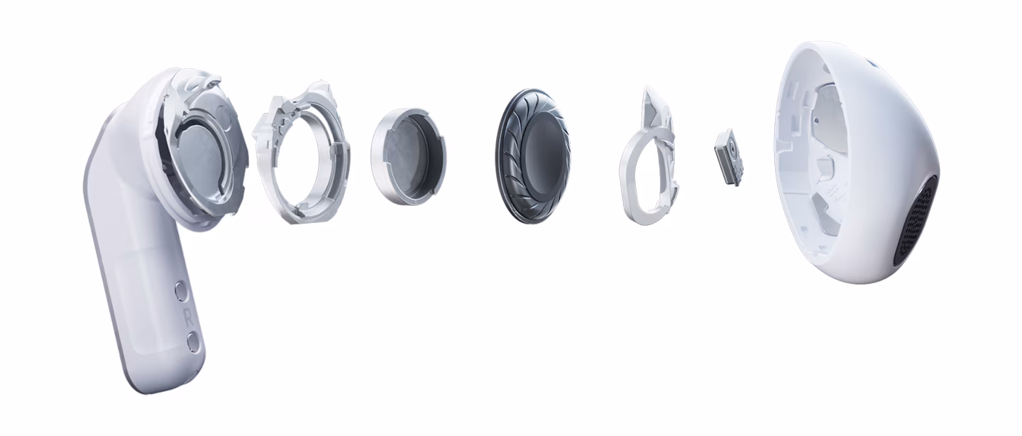Vychutnej si pečlivě vyvážený zvuk sluchátek Galaxy Buds4 s 11 mm širokopásmovým reproduktorem poskytujícím bohatý zvuk – od důrazných kontrolovaných basů až po čisté, detailní výšky.