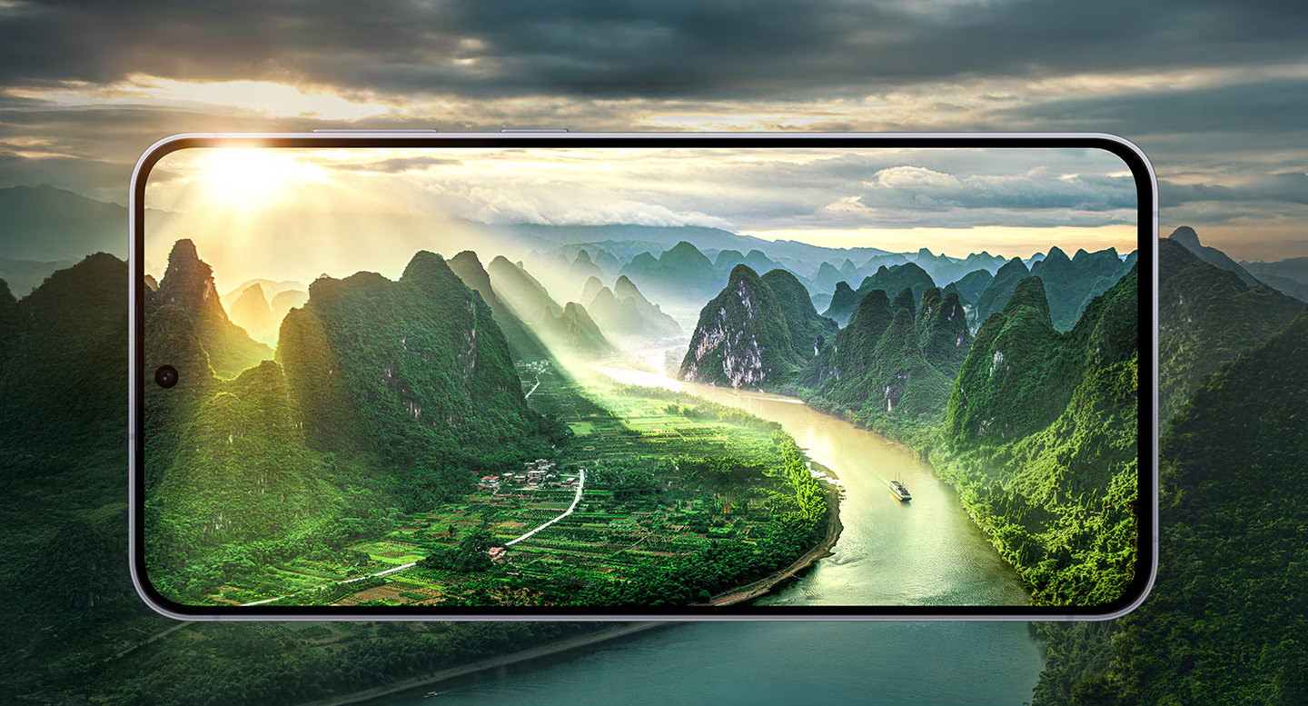 Galaxy S25 FE tě okouzlí 6,7" FHD+ displejem s obnovovací frekvencí 120 Hz, který tě připoutá k obrazovce. Minimalistický rámeček a vysoký jas podpořený funkcí Vision Booster ti rozšíří obzory a představí ti strhující obsah se všemi detaily.