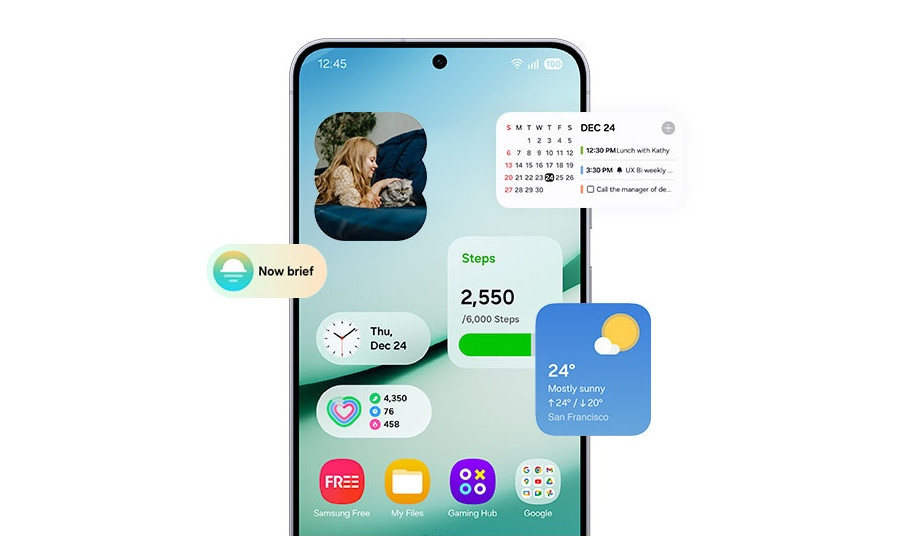 Vylepšené rozhraní One UI 8.0 přináší ještě více možností, jak si zpříjemnit uživatelské prostředí. Chytřejší AI ti usnadní každodenní úkoly a k tomu si můžeš přizpůsobit tapety, přidat na obrazovku šikovné widgety nebo získat rychlý přístup k informacím na nové liště Now Bar.