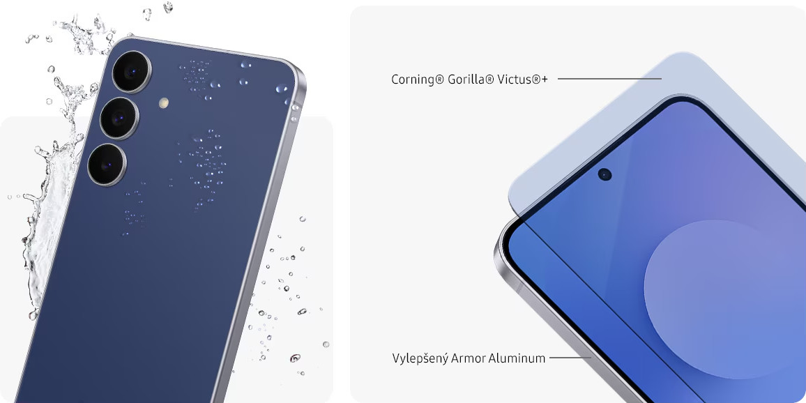 Chráněný sklem Corning Gorilla Glass Victus a posílený vylepšeným rámem Armor Aluminum. Při výrobě Galaxy S25 FE se používají prémiové materiály, které mu dodávají odolnost proti prachu a vodě IP68. Pusť se do všech svých dobrodružství s naprostým sebevědomím.